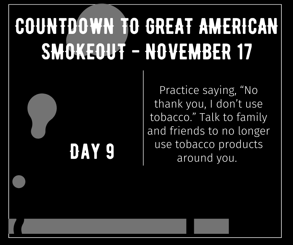 - You don’t have to stop in one day. Start with day one. – The Great American Smokeout Motto