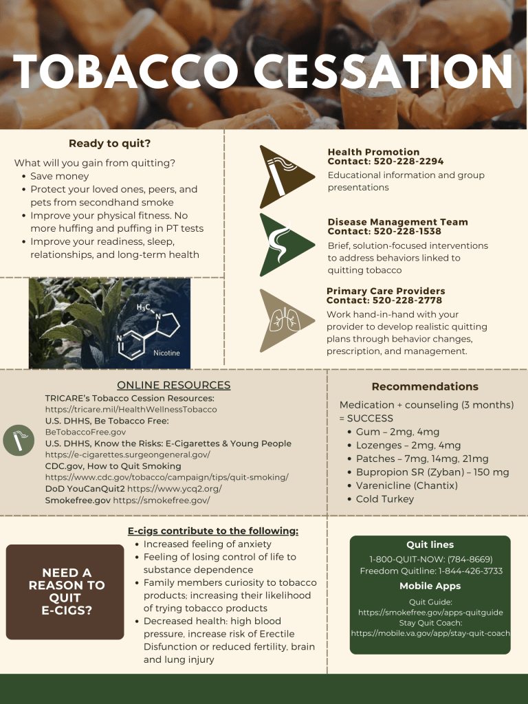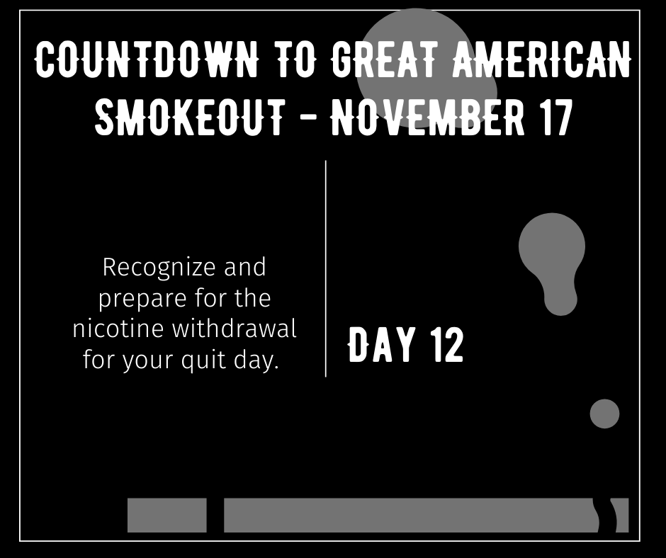 Nicotine withdrawal symptoms can look and feel different for everyone, but your health is not in danger from these symptoms. Remind yourself that the feeling will pass and have a plan on how you’ll deal with them before you start your quit journey. Visit online resources or contact our office for counseling.