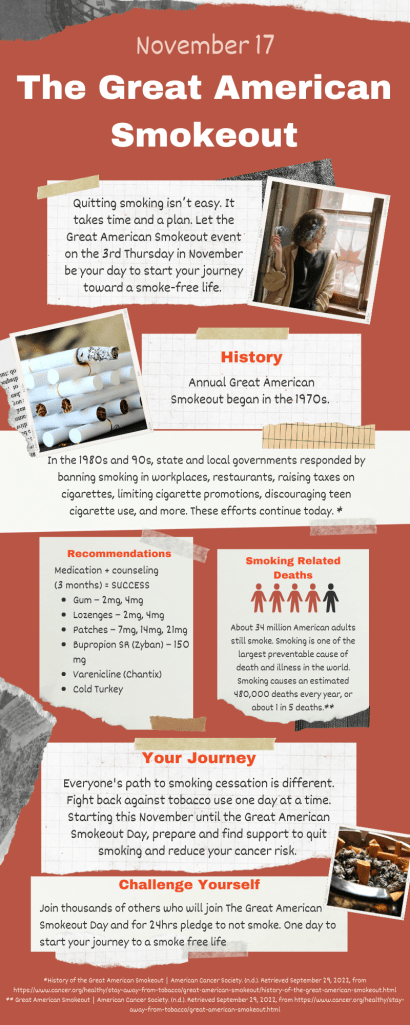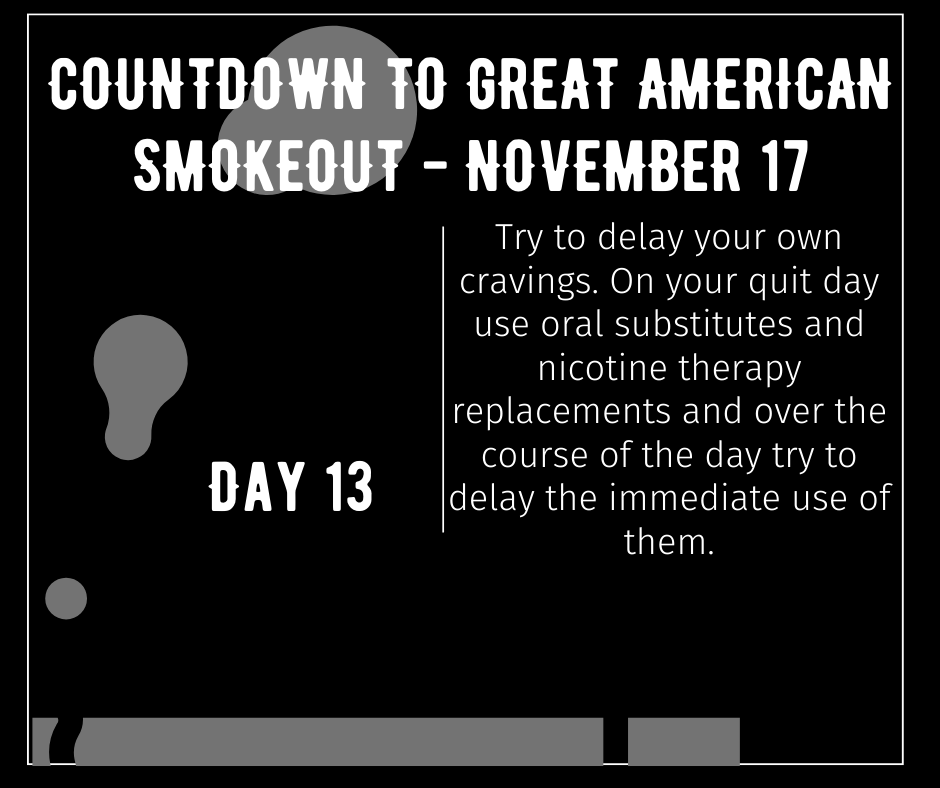 For the final frew days left to The Great American Smokeout view the infographic below today’s daily tip for more information about The Great American Smokeout.