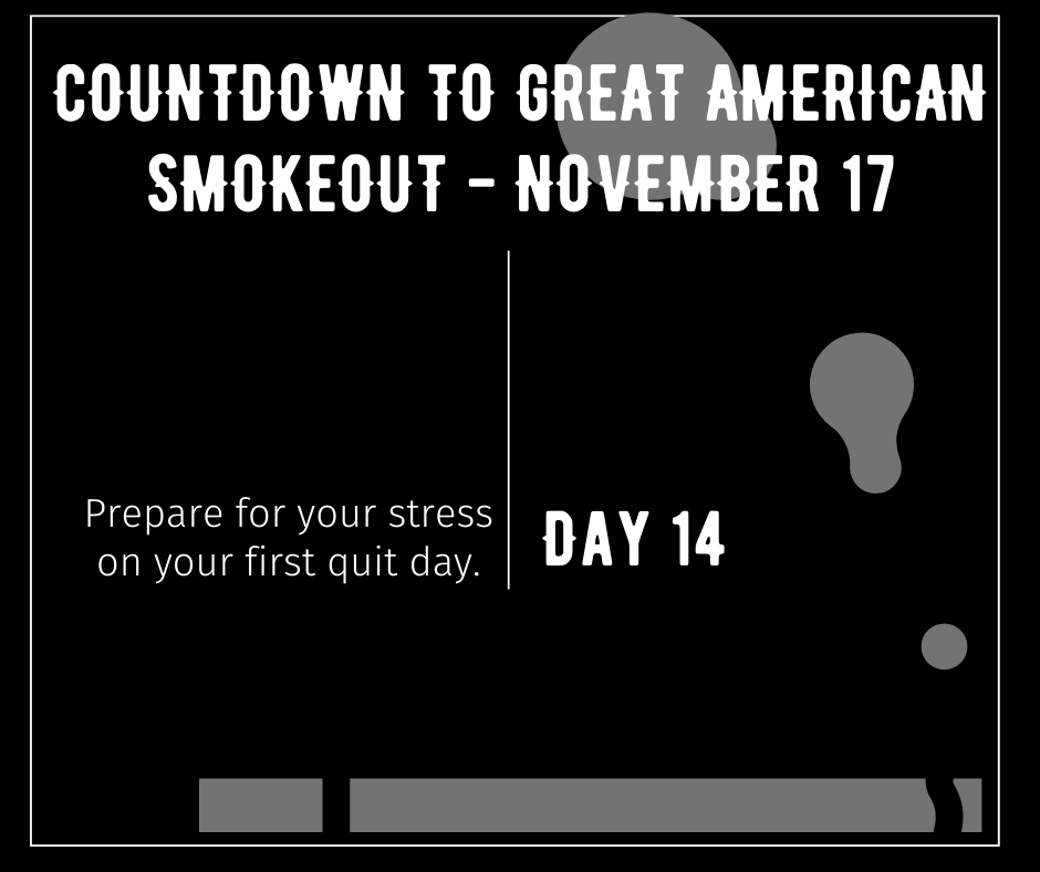 Find ways to beat stress on your quit day. Preparing alternate plans in case oral substitutes run out or are accidentally spilled may help throughout your day. Taking your mind off worries will help with the stress. See the list below on healthy ideas on how to manage stress.