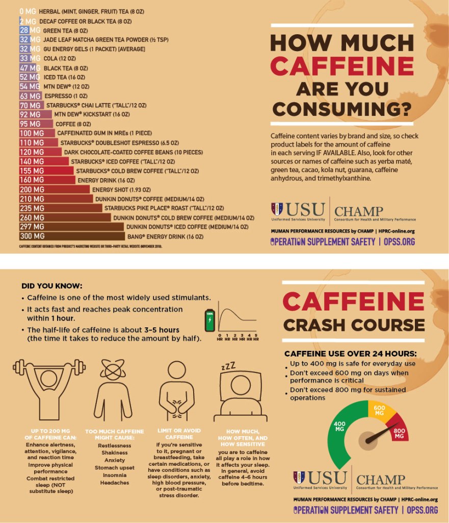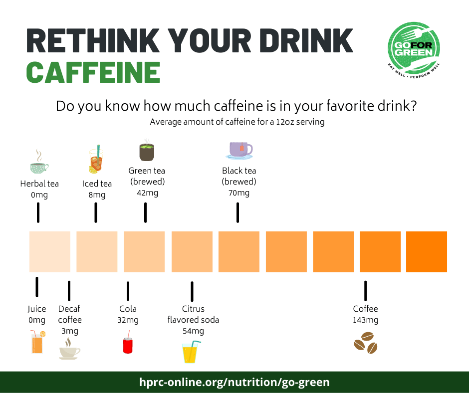 Caffeine is one of the most widely consumed stimulants. The amount of caffeine in coffee, tea, soda, or energy drink can vary greatly. Use the chart below to estimate how much caffeine you typically consume in a day. As Arizona is heating up make sure to include water in your daily liquid intake.
