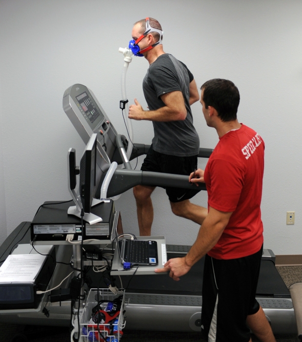 A VO2 Max analyzer measures oxygen uptake while a patient exercises on a treadmill or cycle for approximately 10-15 minutes, gradually increasing from rest to maximum effort. It measures the heart and lungs ability to deliver oxygen to muscles at work (VO2 Max). It also detects the point at which lactic acid begins to build up in the muscles (Aerobic Threshold), and what fuel sources (fats versus carbohydrates) the person is using their heart rate increases (Respiratory Exchange Rate).